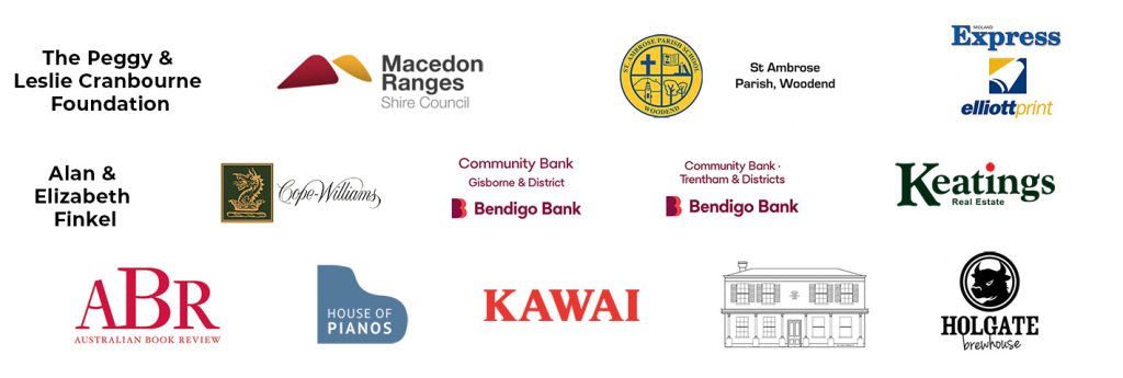 Lynda Brew, Paul & Gillian Carter, Michael & Robin Dillon, Sue Forbes, Father John Haly, Bruce Hedge – Photographer, Islay House, Dr Barry Jones, John Keating, Bernie O’Sullivan – Macedon Ranges Shire Council, Bernadette Petruccelli, Peter Rose, Marshall Maguire, Peter McTaggart, Christopher Menz, Dietmar Tourbier, Steve Wroe – Daylesford Macedon Tourism, Peter the Woodcutter, & all our volunteers